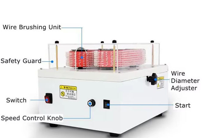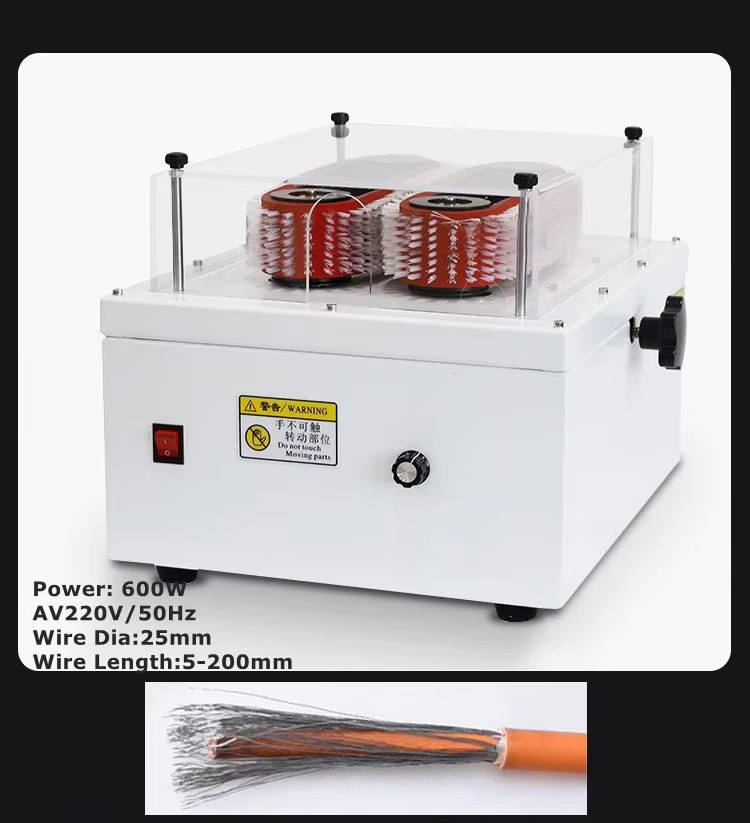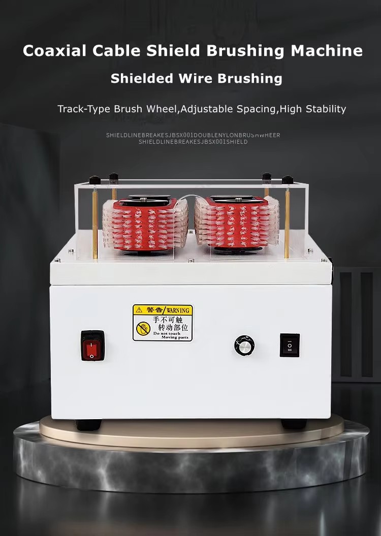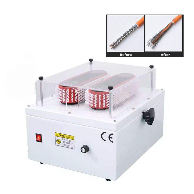 The shielding net can be brushed smoothly for later processing; Hold the wire and slowly put it in from the front section, while slowly rotating the wire; When brushing the shielding net, you should slowly brush the shielding net from the front to the back (the same principle as combing hair) You can pull the wire forward and backward to increase friction, that is, brush the knotted part. The track brush wheel spacing can be adjusted for wires of different sizes. When brushing large square wire harnesses, the front section of the shielding net can be stripped off about 30 (to prevent the front section from being hidden in the wire core and knotted). When brushing smoothly, the shielding net will not be shorter than the stripping mouth.