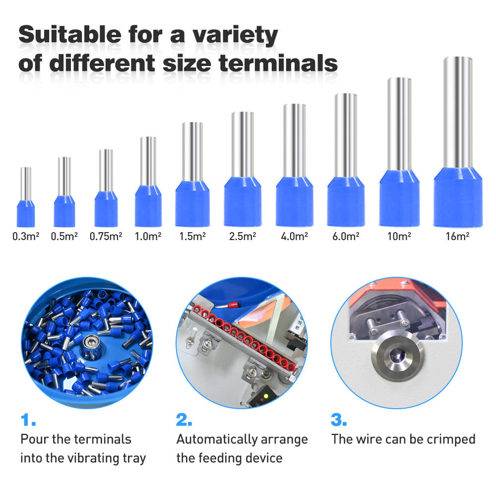 This pre-insulated terminal crimping machine is suitable for crimping a variety of loose tubular terminals onto cables.